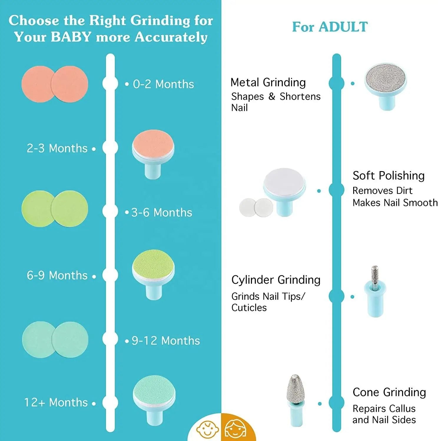 Featuring multiple cushioned filing heads for different ages and nail types, it grows with your baby — from infant to toddler and beyond. The low-noise motor ensures you can even trim while they nap, and the built-in LED light helps you see clearly, even in dim lighting.