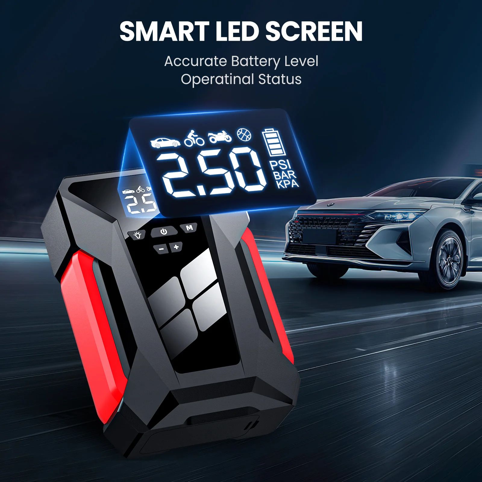 Equipped with a high-capacity lithium battery, PowerPump™ can jump-start cars, SUVs, motorcycles, and even boats — all without needing a second vehicle. The digital air pump delivers fast inflation with precise pressure control for tires, bikes, balls, and more.